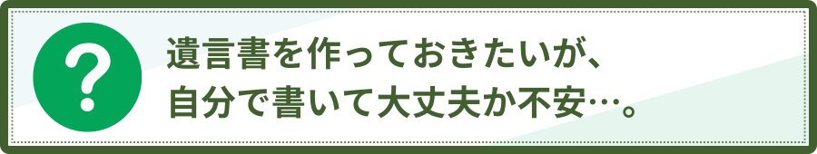 「親族が争わないようにしたい」「遺された家族に負担をかけたくない」「自分の財産を希望通りに渡したい」――そんな想いを形にするものが遺言書です。しかし、自筆証書遺言は書き方を誤ると無効になるリスクがあり、公正証書遺言には専門的な準備が必要です。当事務所では、お客様のご希望を丁寧に伺い、最適な方法で法的に有効な遺言書の作成を支援いたします。将来の安心のために、今から準備してみませんか?