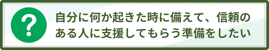 「認知症や病気などで判断能力が低下すると、財産管理や契約行為や各種手続きを進めるのが心配です。」こうした場合に備える制度が「成年後見制度」と「任意後見契約」です。当事務所では、将来に備えた任意後見契約の準備、司法書士と連携した成年後見人等支援を行います。ご本人とご家族が安心して暮らせるように、法的な仕組みを活用して支援いたします。